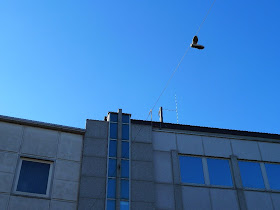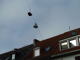 Dieser Trend, auch „shoeing“ genannt, schwappt also seit einiger Zeit auch zu uns. Einen nicht gerade kleinen Anteil an diesem Trend nimmt hierbei zweifelsohne der Film „Wag the dog“ ein, wo aus Gründen der Solidarität mit einem Soldaten namens „Shoe“ überall im Land Schuhe auf Laternenmasten und über Leitungen geworfen wurden. Und diese Art von Schuhplatzierung sehe ich immer häufiger auch bei uns; doch steckt auch hier eine Art von Protest dahinter? Oder will da jemand einfach nur seine alten Latschen loswerden?