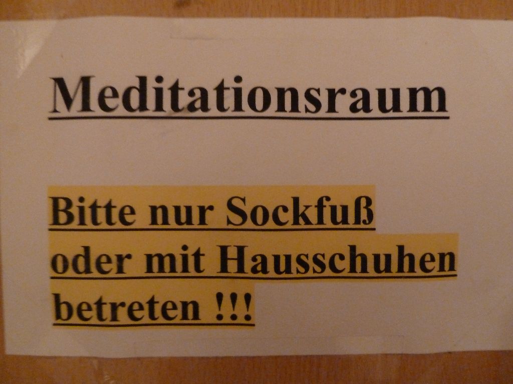 Der Morgen graute bereits, als ich einen abschließenden Rundgang durch unsere ehrwürdige Herberge unternahm. In nahezu allen Fällen ist dieser Rundgang ergebnislos – keine Beschädigungen, keine Einbrüche, keine nennenswerten Verschmutzungen. Doch als ich den 2. Stock betrat, sah ich hinter einem Mauervorsprung auf dem Parkett liegend etwas hervorragen: Dort lagen – zwei Füße. Zwei Füße in Schuhen und mit dem dazugehörigen Menschen dran – quasi wie im Krimi, wo man nur den unteren Teil des Körpers sieht, aber weiß, dass dieser Mensch tot ist. Das dachte ich dann auch -´Muss das sein: Ein Toter zu Feierabend?`-, doch bei näherer Betrachtung stellte sich dann heraus, dass der werte Herr nur schläft; also – Alkohol.